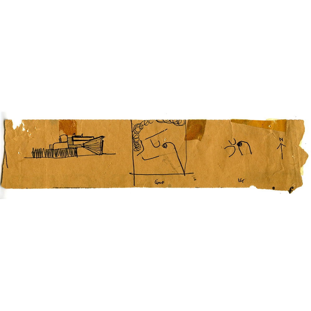 Designed in 1964, this was the first of four building projects commissioned by Michael and Helen Grindrod QC. A spatially interesting house, it included internal balconies that could accommodate social gatherings. A national brick shortage at the time resulted in the use of very old handmade bricks from a demolished local barn. The plan included a dramatic circular staircase clad in black stained timber boards of different thicknesses. The initial sketch ideas shown here formed the basis for the design.