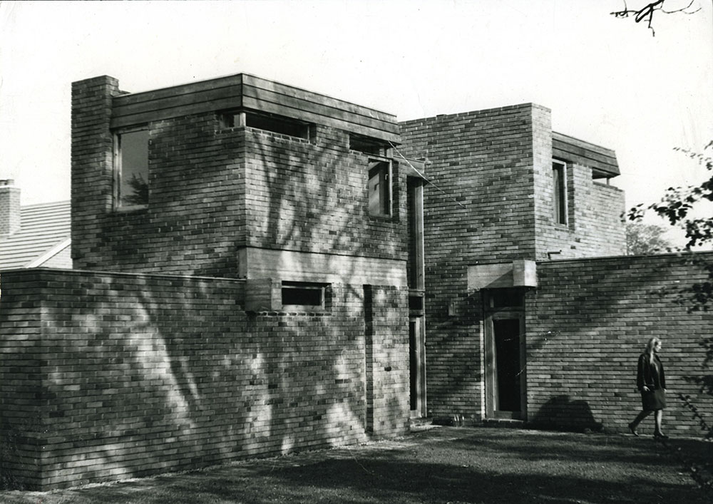 Built in 1964 using handmade bricks with pine window frames and boarded fascias, it was much influenced by the new university buildings in Cambridge. This is a suburban site where the design attempted to create complexity in contrast to the surrounding suburban plots.