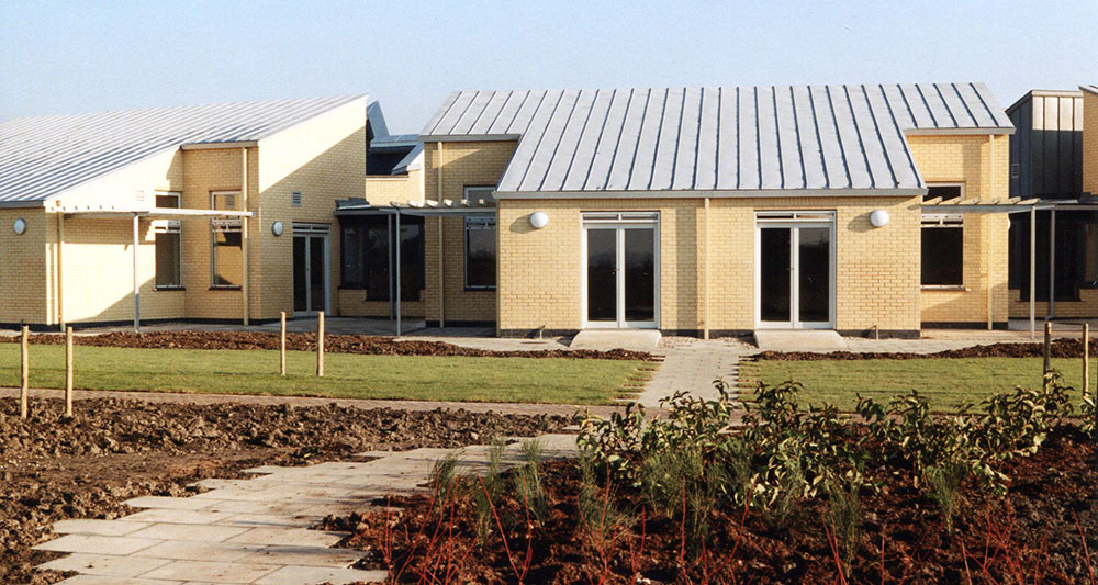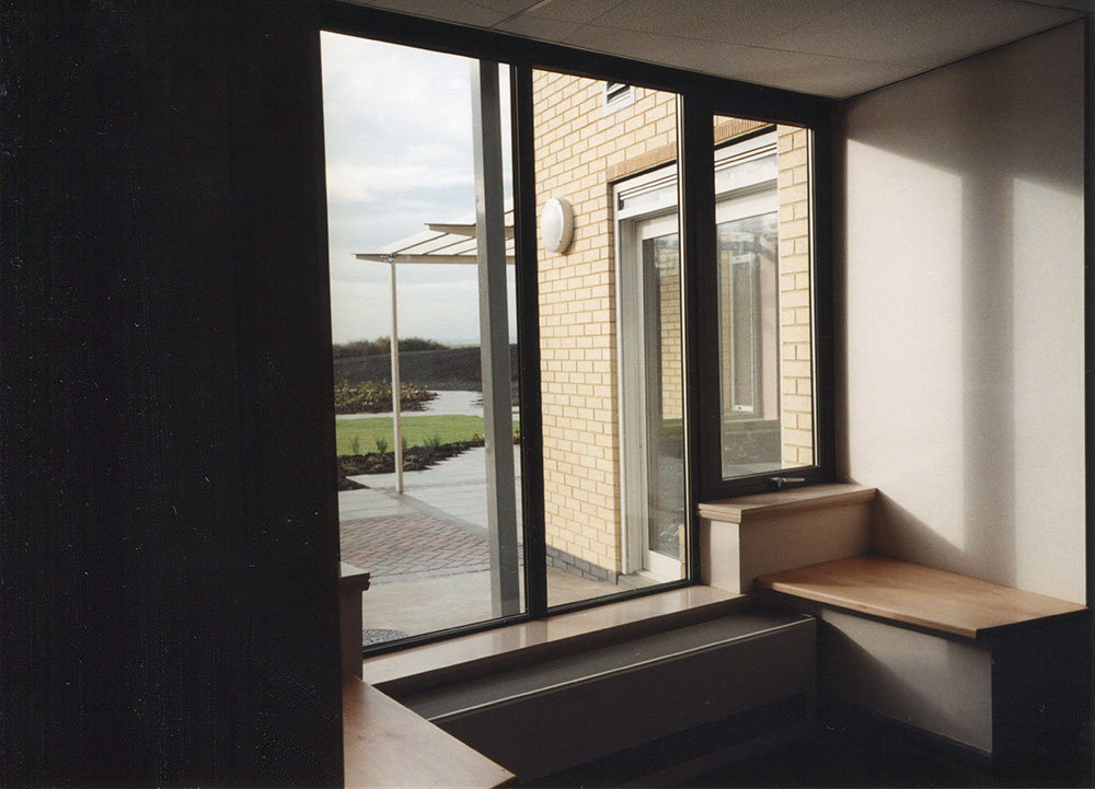 This was purpose built to replace an existing hospice housed in a converted Victorian house. All bed spaces are arranged in a curve facing views to the south west. There are full length doors to outside seating areas for every patient. A multi-faith oratory is at the heart of the plan adjacent to a central courtyard giving light and green space to the surrounding offices. This courtyard is also visible from the entrance foyer and throughout the building. Light floods into the seating areas along the corridors and the surrounding landscape is visible at every turn.